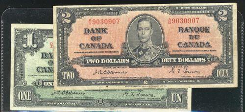 Lot of two 1937 notes with the scarce Osborne signature. Includes a BC-21a $1 and a BC-22a $2. Grades are VF or better.