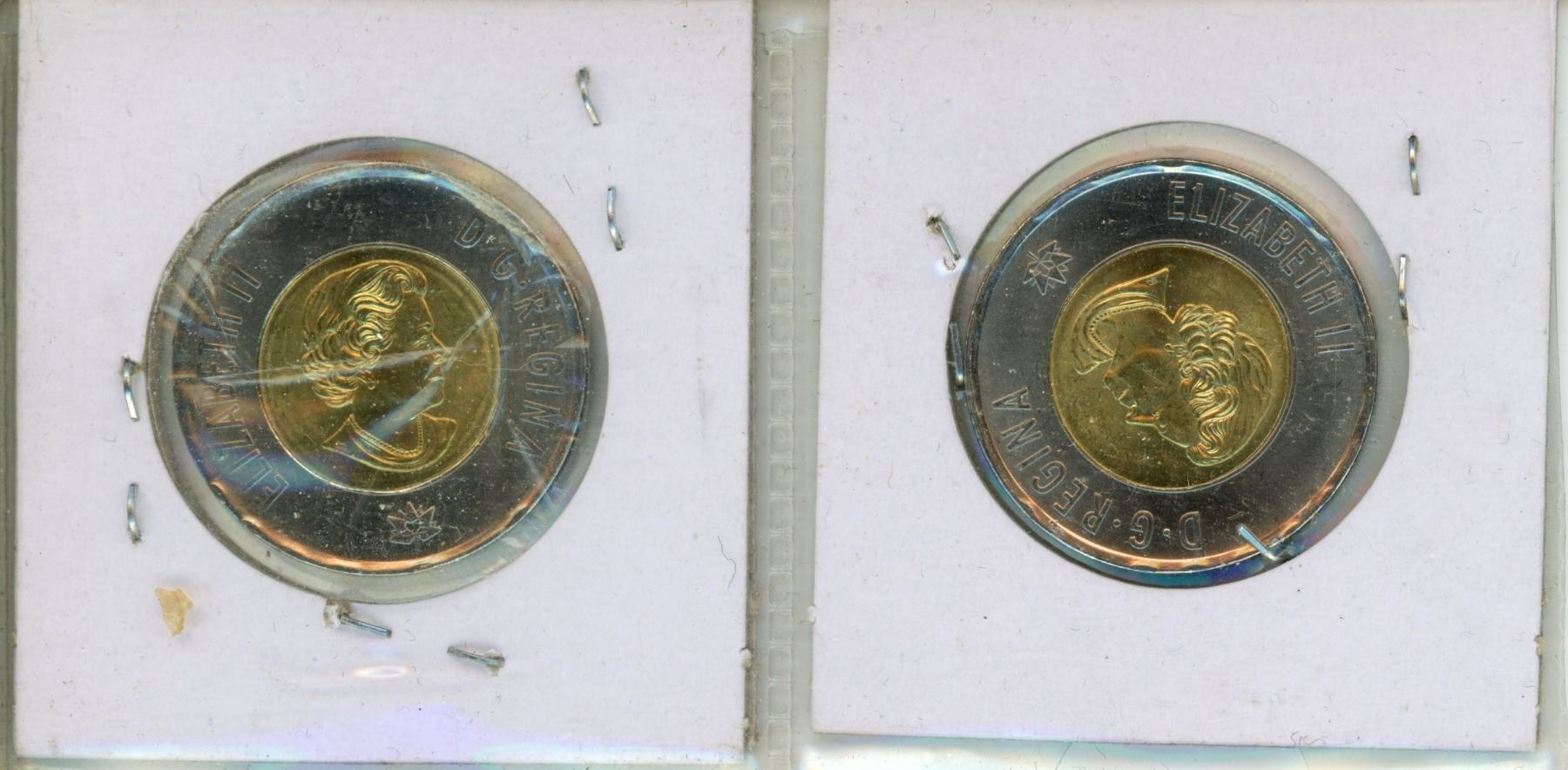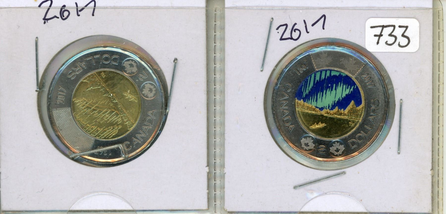 Lot of two 2017 Canadian toonies $2.00 Northern Lights color and non-color