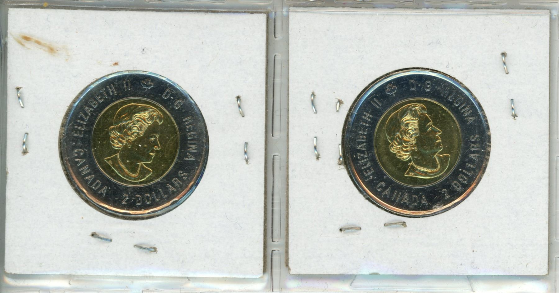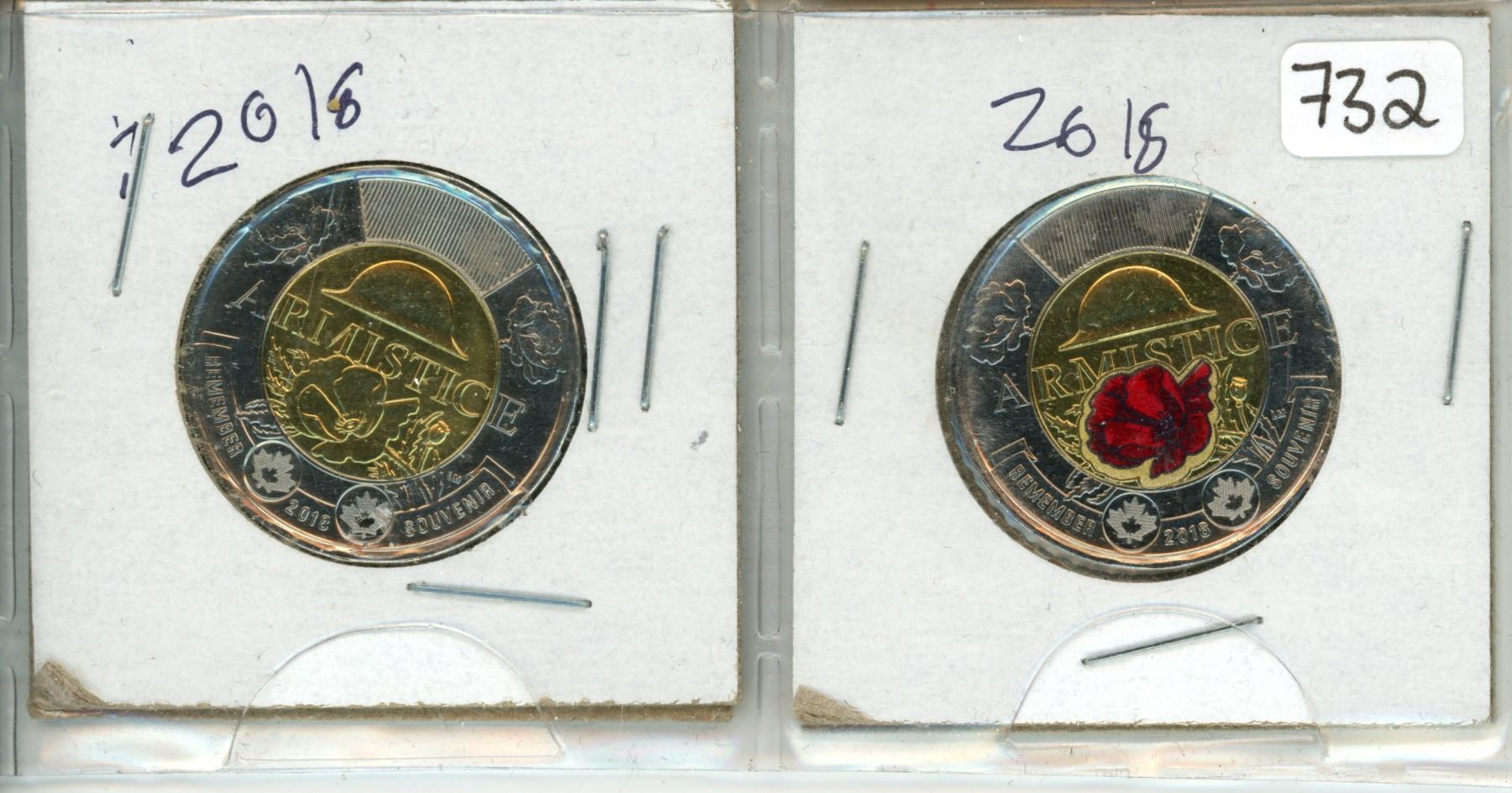 Lot of two 2018 Armistice toonies $2.00 color and non-color
