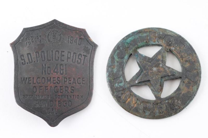 Includes California Ranger Badge, and a SD Police Post Badge. Unknown age