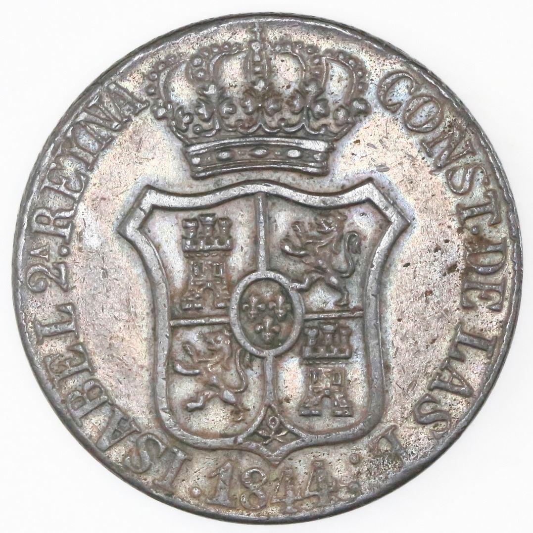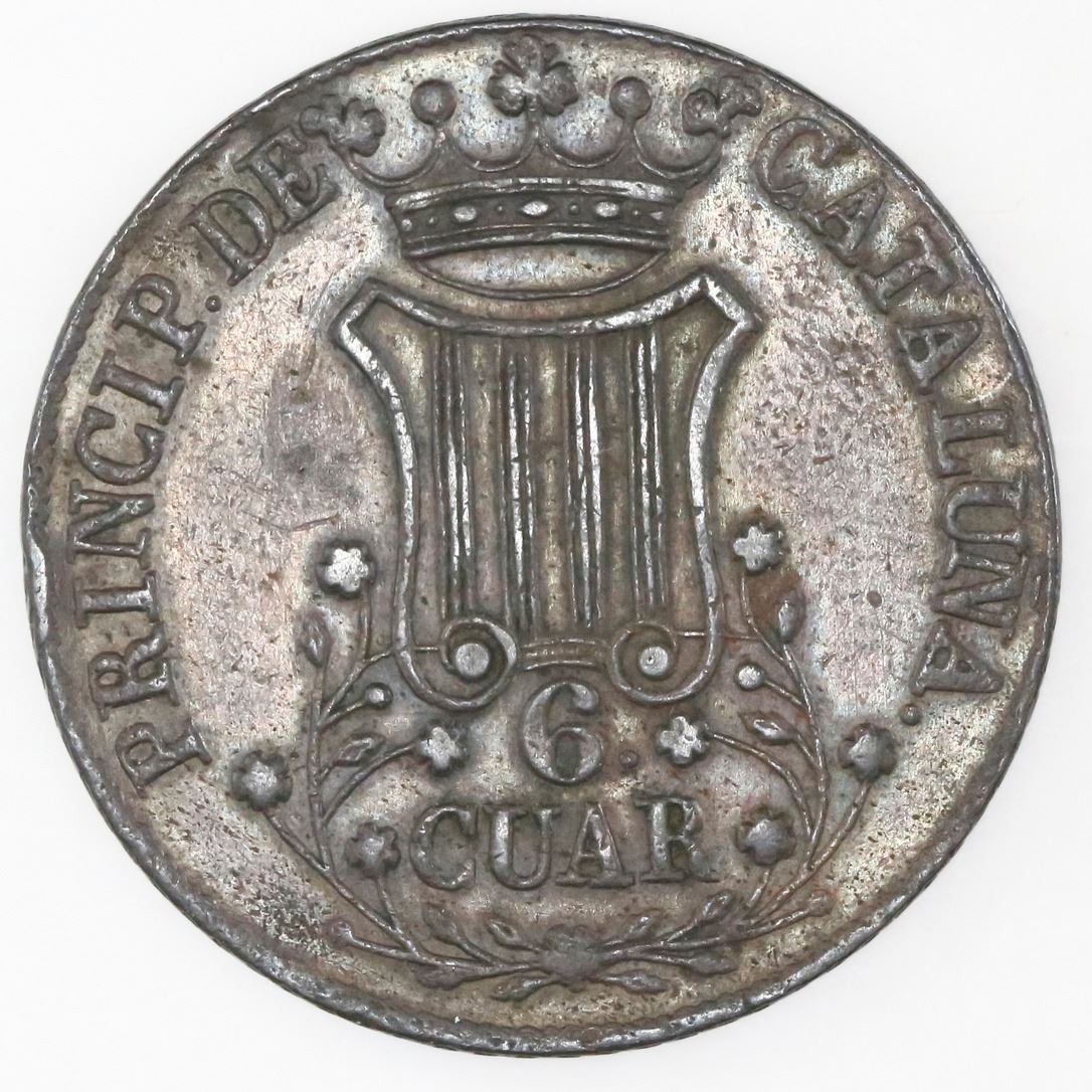 Lot of two Barcelona, Spain, bronze 6 cuartos, Isabel II: 1843 and 1844.