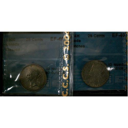 Lot of two CCCS graded 25¢; 1874H EF-40 scrts. 1900 EF-40 cld.