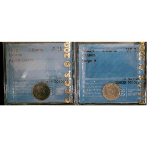 Lot of two CCCS graded Five cents silver; 1903 Lg.H VF-30, 1910 R.L. F-15