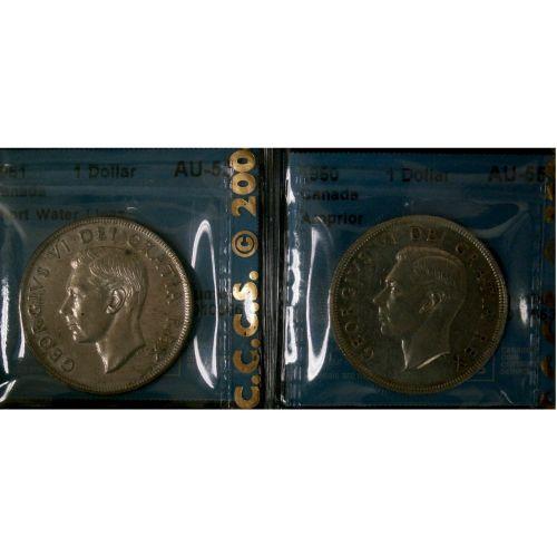 Lot of two CCCS graded Silver dollars, 1950 Arnp AU-55, 1951 SWL AU-55. Both coins are brilliant