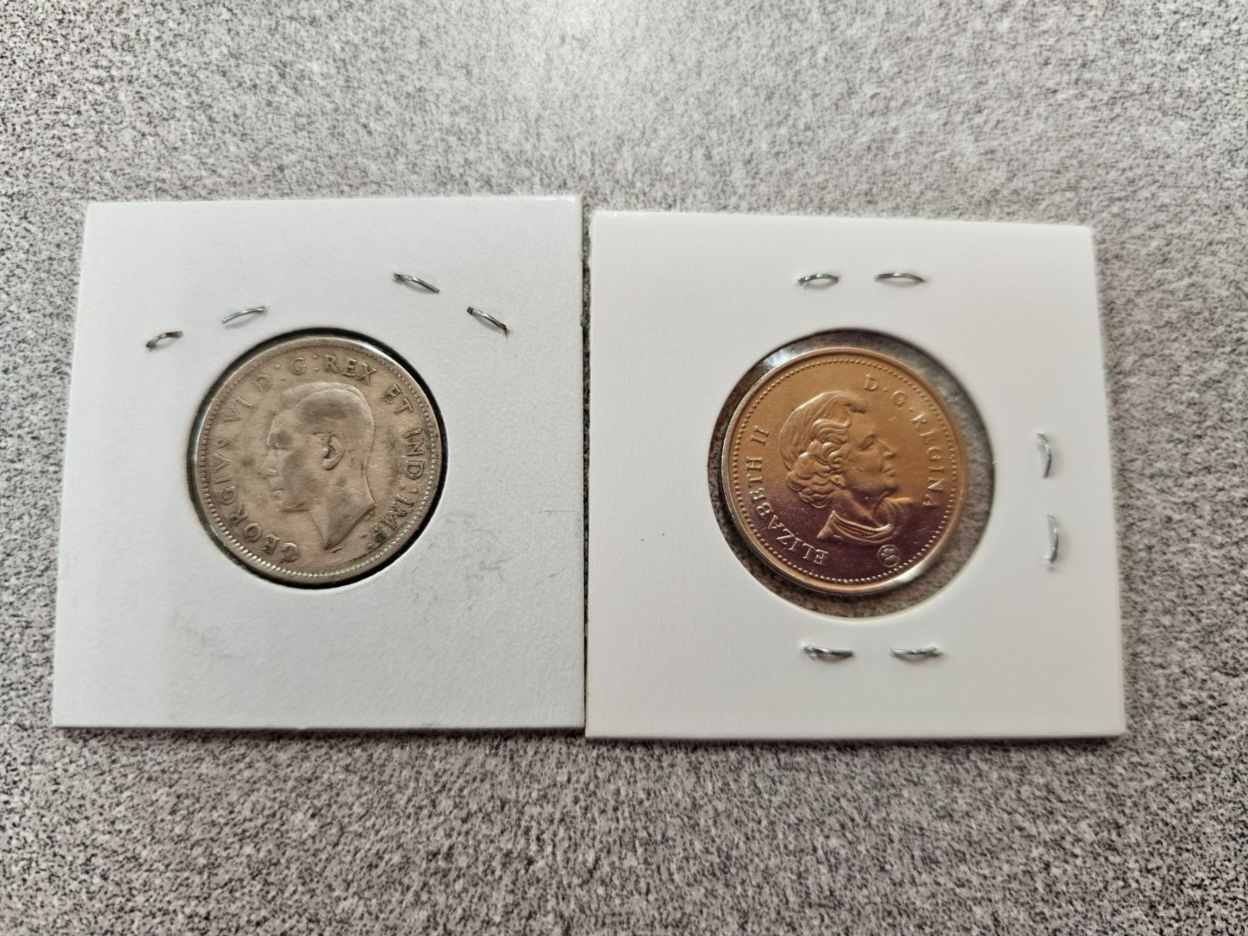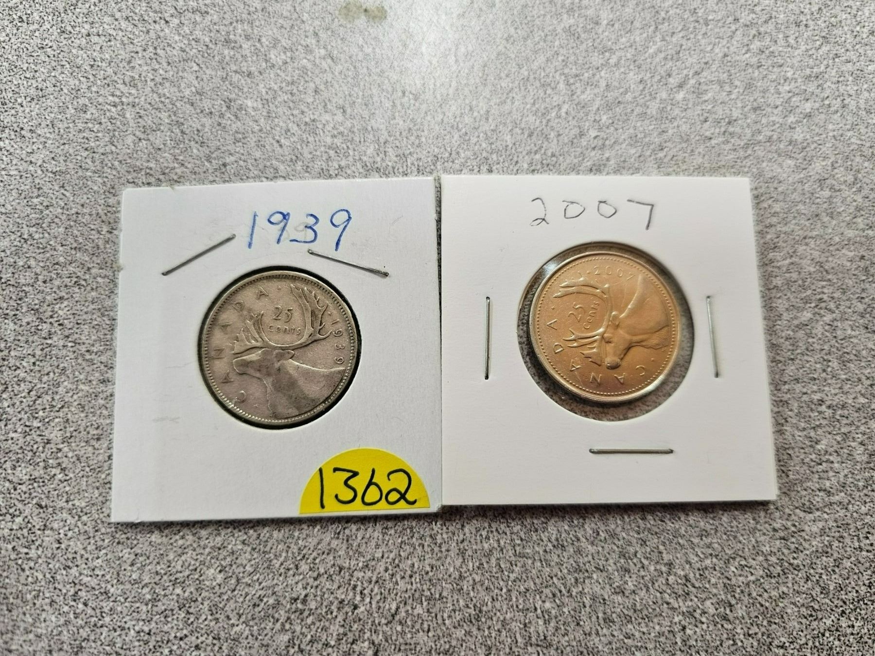 Lot of two Canadian quarters 25¢ twenty-five cents - 1939, 2007