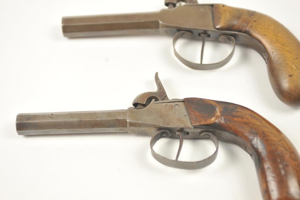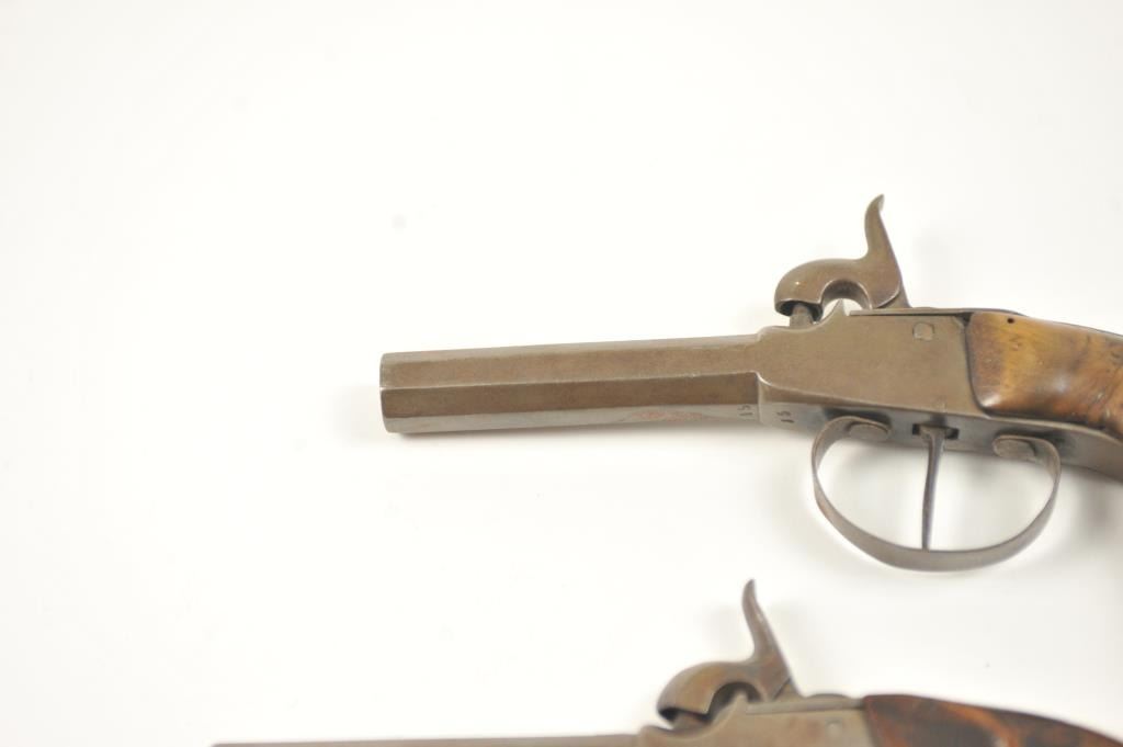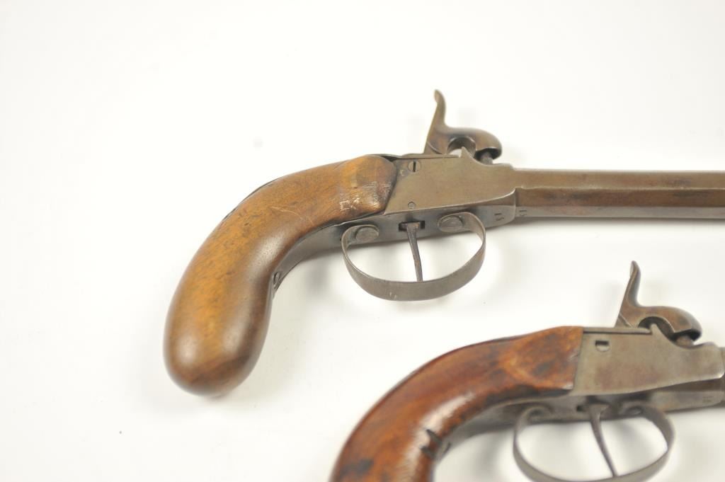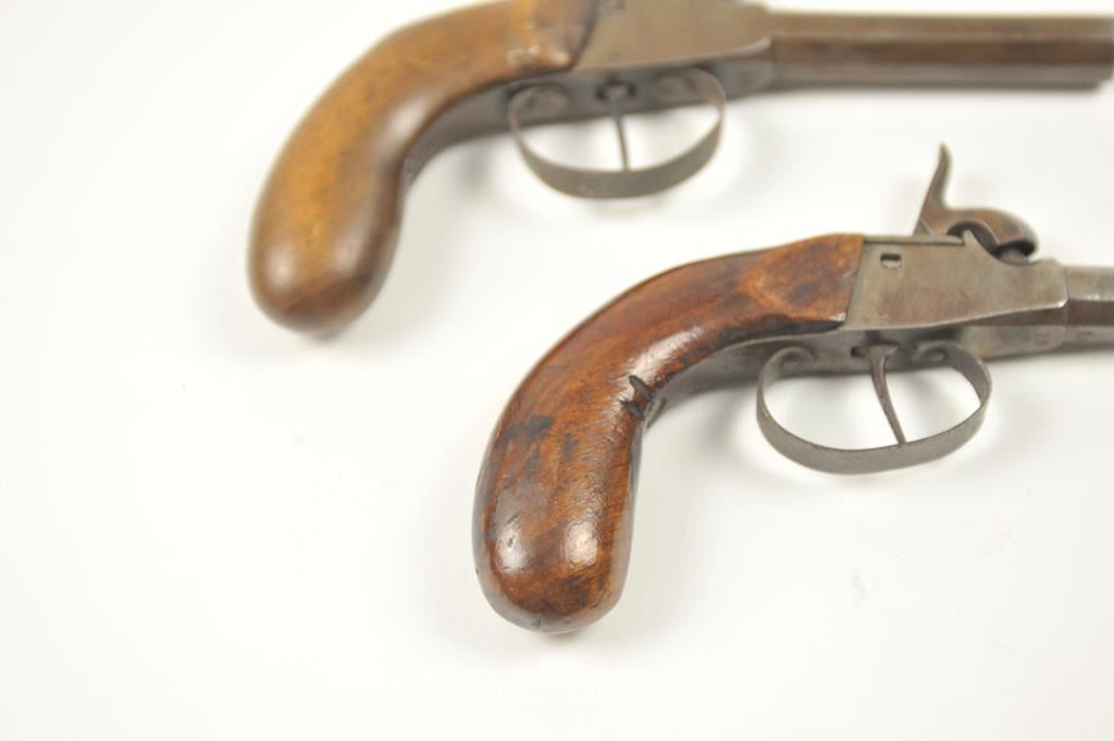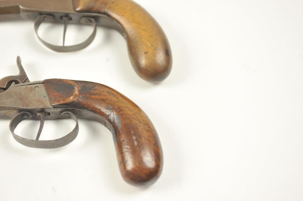 Lot of two European percussion pistols made for export circa 1840-1860’s, no proofs, Central European in origin in good to very good condition. 7 ½” in overall length with octagon barrels of .45-.50 caliber. Manywere imported during the Civil War era. Est.: $150-$300. (Antique).