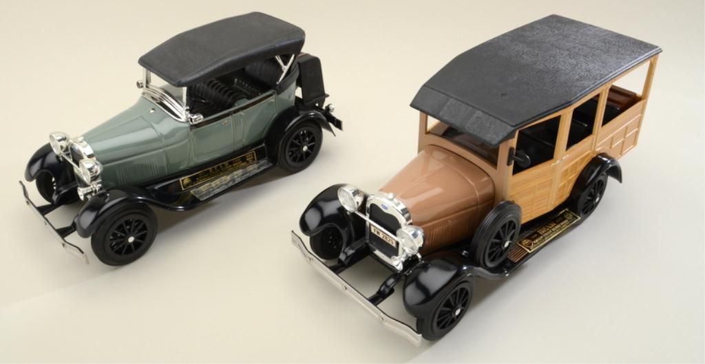 Lot of two James B. Beam Regal China Decanters in their original boxes; one a 1929 “Woodie” Station Wagon decanter and the other a 1929 Ford Phaeton decanter; both in very good condition. Est.: $75-$150.