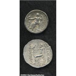 Lot of two Macedonian tetradrachms of Alexander III. Includes: Macedonia ('Amphipolis'), 336-ca. 323 B.C. Price 78. Toned VF/Fine // Odessos, ca. 125-ca. 70 B.C. Price 1193 (same dies as 1193a). VF. 2 coins Important notice: Heritage usually auctions material at the rate of 200-250 lots per hour. On some occasions eBay Live bid software or the Internet may not be able to keep up with the pace of the auction. We recommend placing a realistic absentee bid now as insurance to avoid disappointment. Occasionally the auctioneer may eliminate or reject an eBay Live bid, and the auctioneer may also reopen a lot after the close of the eBay live bidding (usually because we missed an audience bid), and may reject your bid even if it shows you as the winning bidder. By bidding via eBay Live, you agree that Heritage may award the lot to another bidder at its sole discretion under the circumstances described above or any other reasonable circumstances. Also please note that all Heritage lots purchased through eBay Live carry a 20% Buyer's Premium. Please make sure you read the Terms and Conditions before you bid.
