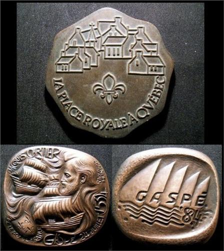 Lot of two Quebec Medals. One commemorating the 24 July 1984 (La fête du Quebec), Bronze base, and the other is a Uniface example commemorating La Place Royale a Quebec, also of copper base.