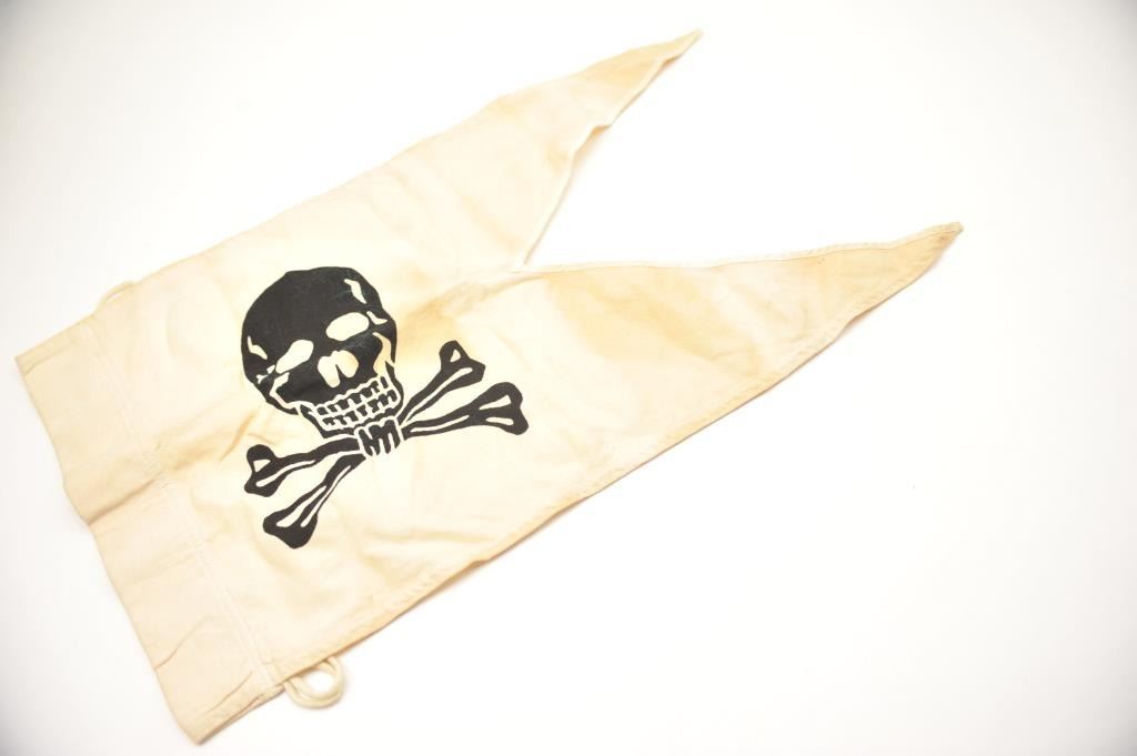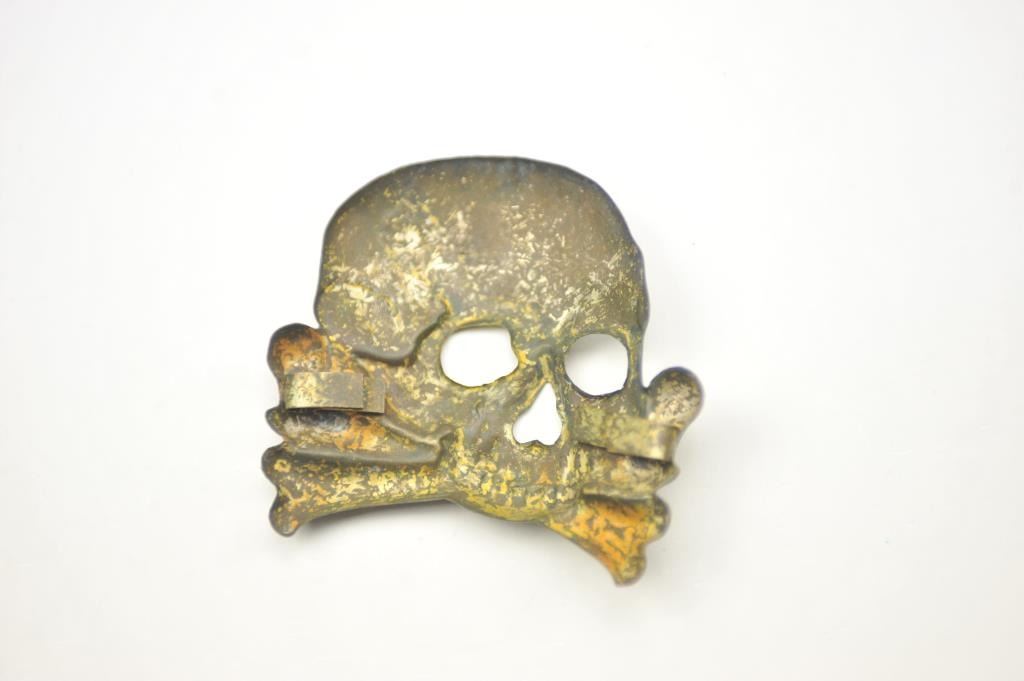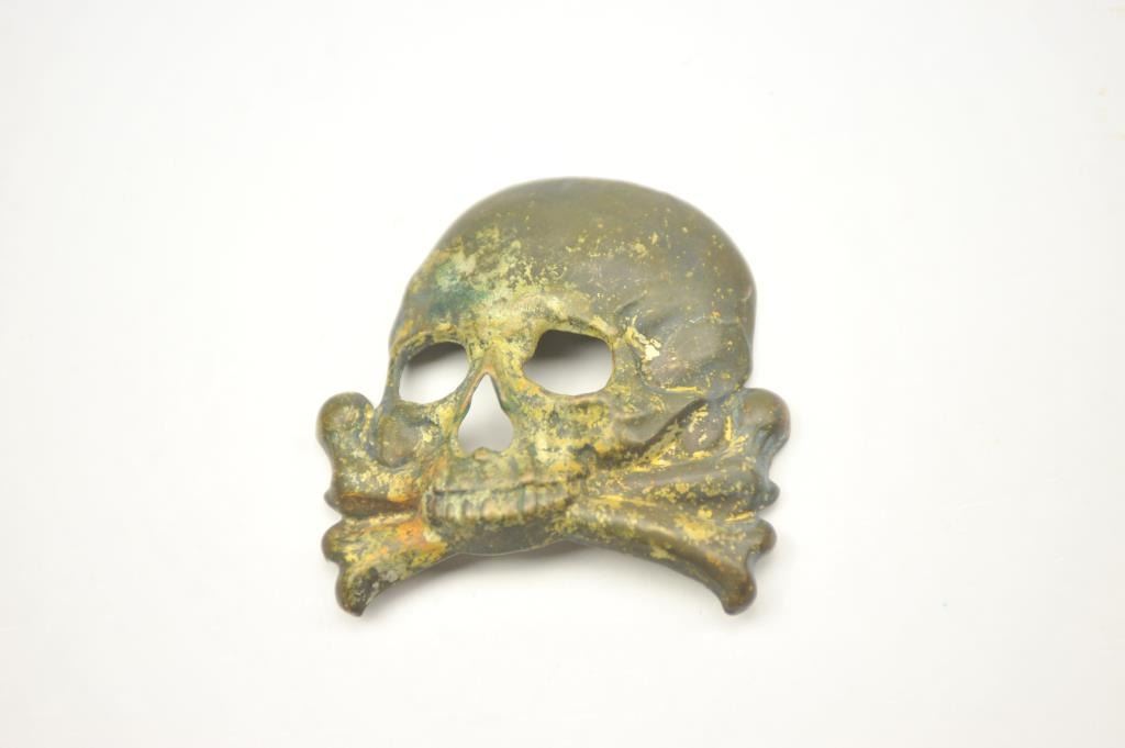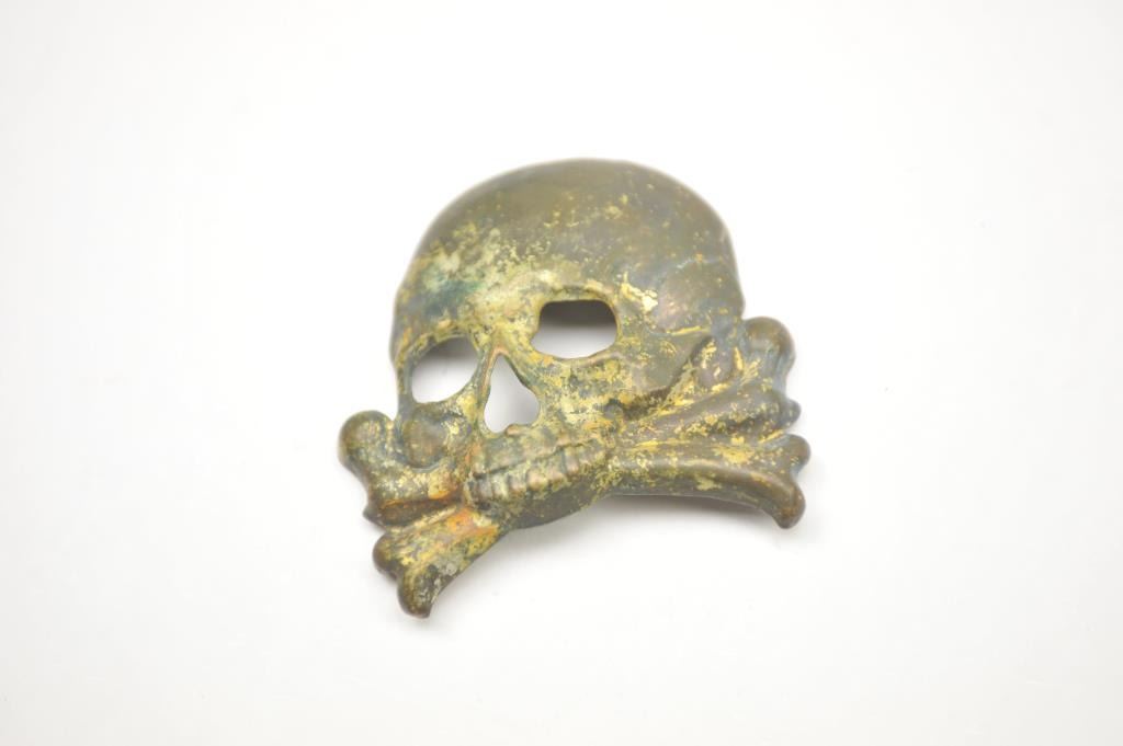 Lot of two WWII German pieces. A German “Death Head” Hussar’s hat plate and canvas pendent marked, “Leibhusaren” and “WALTER BUCH HEILBRONN”. Both items are in very good overall condition. Est.: $150-$300.