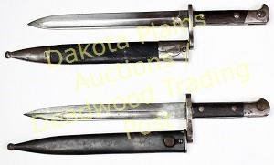 German 71/84 bayonet with scabbard and Turkish Mauser bayonet with scabbard. Est. 75-150