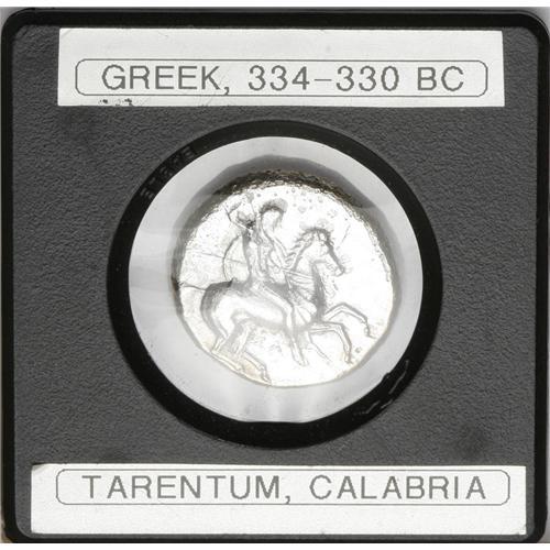 <B>Lot of two coins from Magna Graecia.</B></I> Includes; Calabria, Taras. AR nomos // Sicily, Syracuse. Agathokles. AE. Average VF, the nomos porous and cleaned.