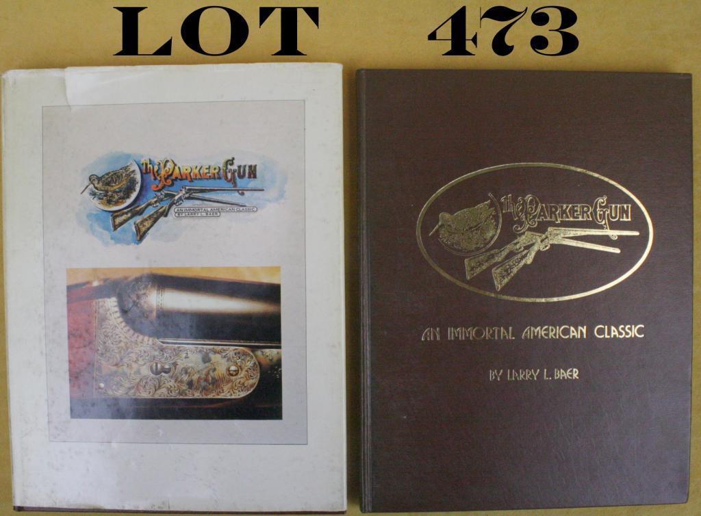 Lot of two different editions of hardback books on Parker Shotguns by Larry L. Baer, one with dust cover; a wealth of information for the Parker collector. Est.: $50-$75.