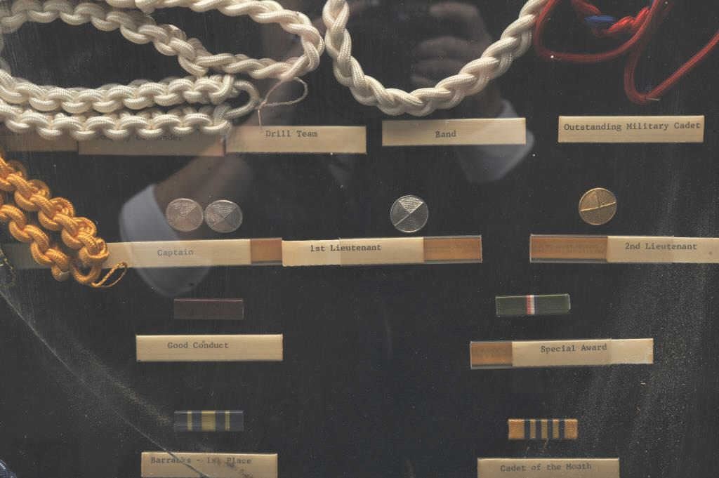 Lot of two displays of U.S. military uniform patches, medals and uniform cords; many of the items are identified. Est.: $150-$300.