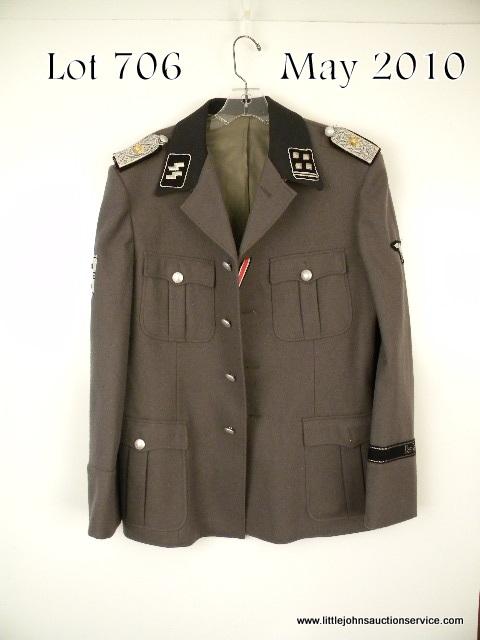 Lot of two high ranking SS officer’s service tunics, studio or costume pieces. Excellent condition. A quality manufacture, but not authentic to the period. Est: $300 - $600