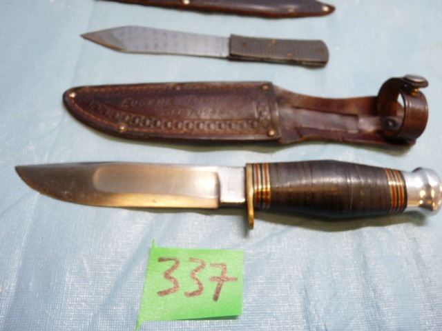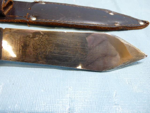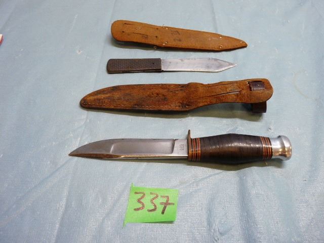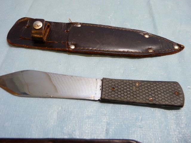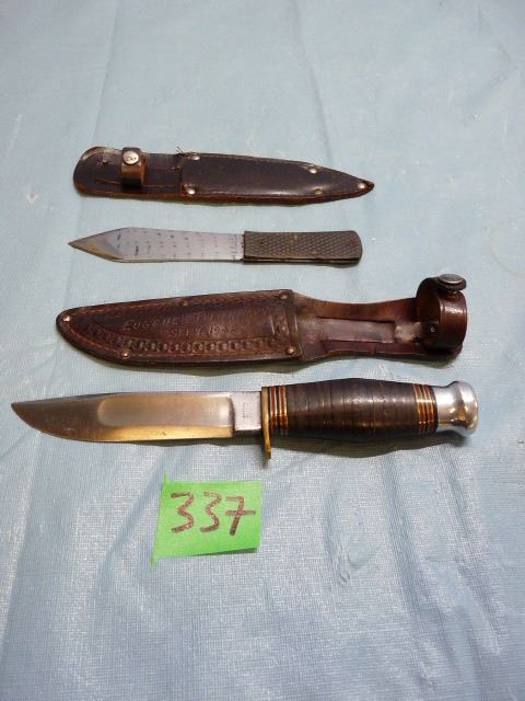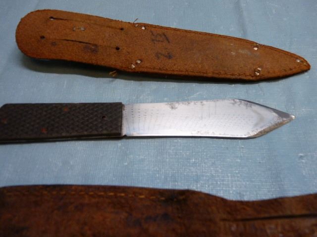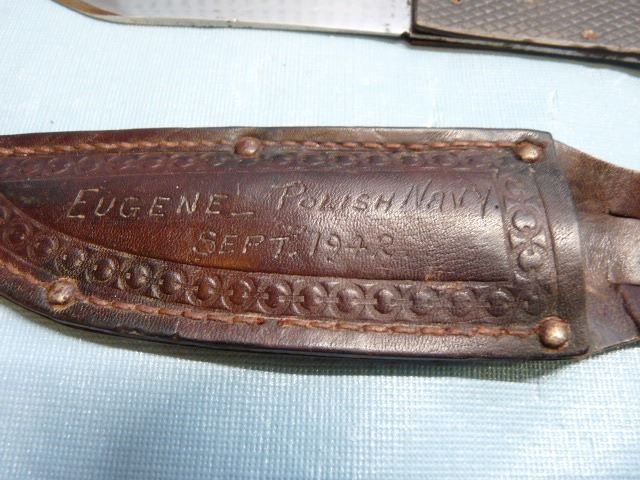 Lot of two knives - trueflight throwing knife and scabbard, by Wm Rogers / Sheffield , sharkened tip - imperial cudedge cutlery , hunting knife and scabbard - scabbard engraved Eugene- Polish Navy, sept 1942