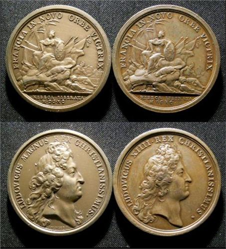 Lot of two medals (Original and Restrike) commeorating The Defeat of Phipps in Quebec in 1690.