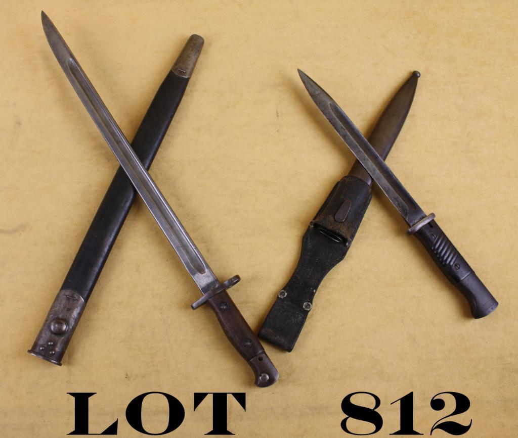 Lot of two military bayonets including one for an Enfield bolt-action rifle and a Mauser bolt-action rifle, both in overall good condition. Est.: $75-$125.