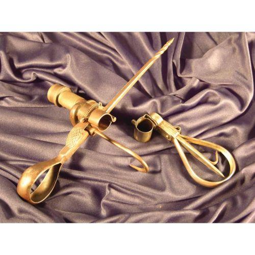 Lot of two miner candle sticks one made by J. Spencer, Oroville, CA. and the other a 1903 Patented folding candle stick. Both in good original condition. Large one measures 11 inches long.