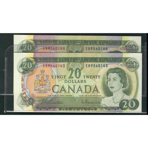 Lot of two notes, BC-50a 1969 $20 Beattie- Rasminsky EB9560143 EB9560144, UNC.