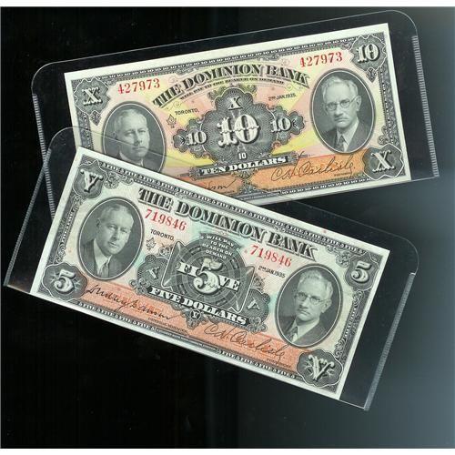 Lot of two notes. The Dominion Bank 1935 $5, $10 220-26-02/04. Both notes are Unc. To Choice Unc.