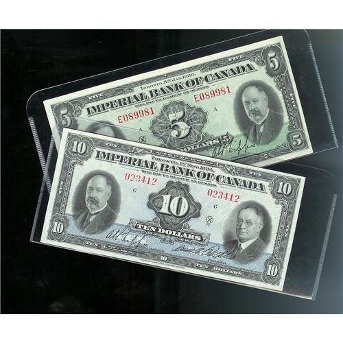 Lot of two notes. The Imperial Bank 1939 $5, $10 375-24-02/04. Both notes are EF-AU.