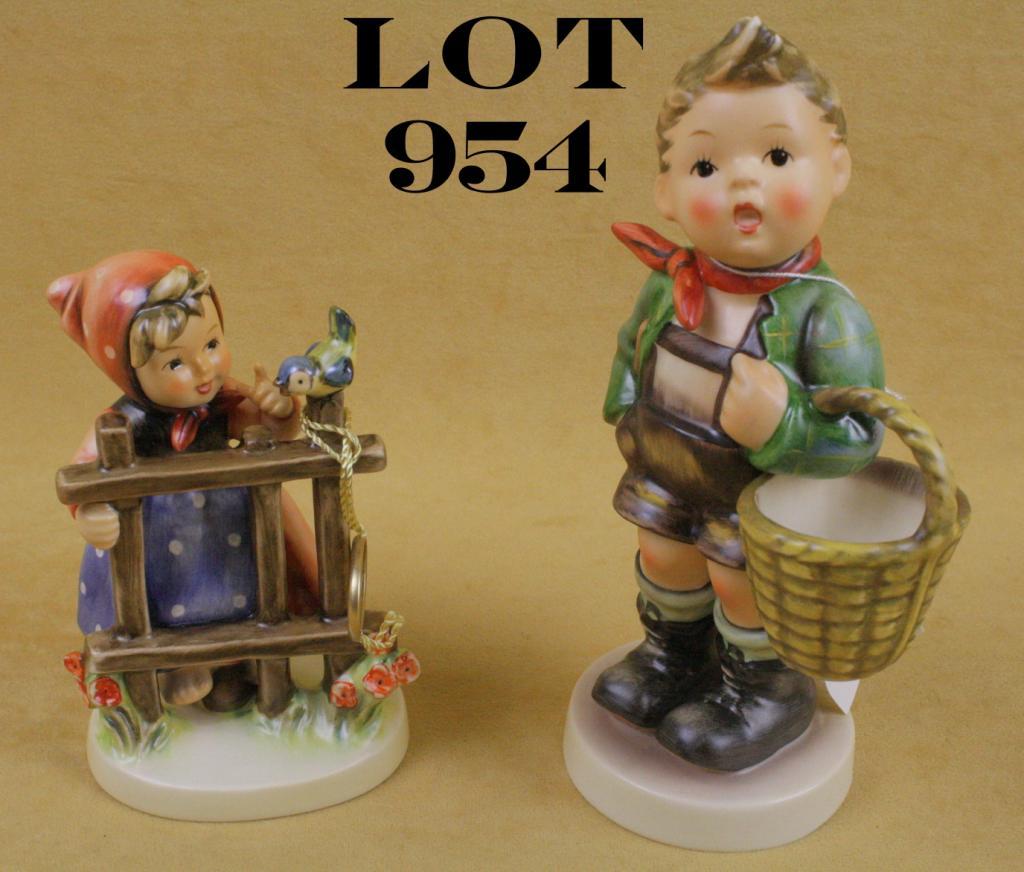 Lot of two porcelain figurines by Goebel in factory cardboard boxes and in excellent condition at time of description; the first is entitled “Signs of Spring”, #829 and the second is entitled “Village Boy”. Est.:$50-$100.