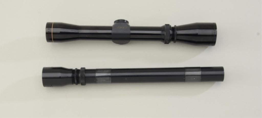 Lot of two rifle scopes including a Bausch &  Lomb Balvar scope and a Leupold 2x7 Vari-X  II; both in excellent condition; the Bausch &  Lomb in factory cardboard box, the Leupold  in a Redfield cardboard box.  Est.:$100-$150.