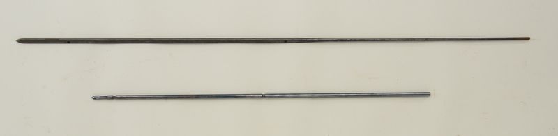 Lot of two rod bayonets, one for a Springfield trapdoor rifle, the other not ID’ed; possibly U.S. or experimental; both in very good condition. Est.: $100-$300.