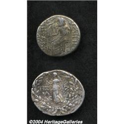 Lot of two tetradrachms. Includes: Phoenicia. Arados. VF // Syria, Under the Romans. Copying Philip I Philadelphos. Fine. 2 coins Important notice: Heritage usually auctions material at the rate of 200-250 lots per hour. On some occasions eBay Live bid software or the Internet may not be able to keep up with the pace of the auction. We recommend placing a realistic absentee bid now as insurance to avoid disappointment. Occasionally the auctioneer may eliminate or reject an eBay Live bid, and the auctioneer may also reopen a lot after the close of the eBay live bidding (usually because we missed an audience bid), and may reject your bid even if it shows you as the winning bidder. By bidding via eBay Live, you agree that Heritage may award the lot to another bidder at its sole discretion under the circumstances described above or any other reasonable circumstances. Also please note that all Heritage lots purchased through eBay Live carry a 20% Buyer's Premium. Please make sure you read the Terms and Conditions before you bid.
