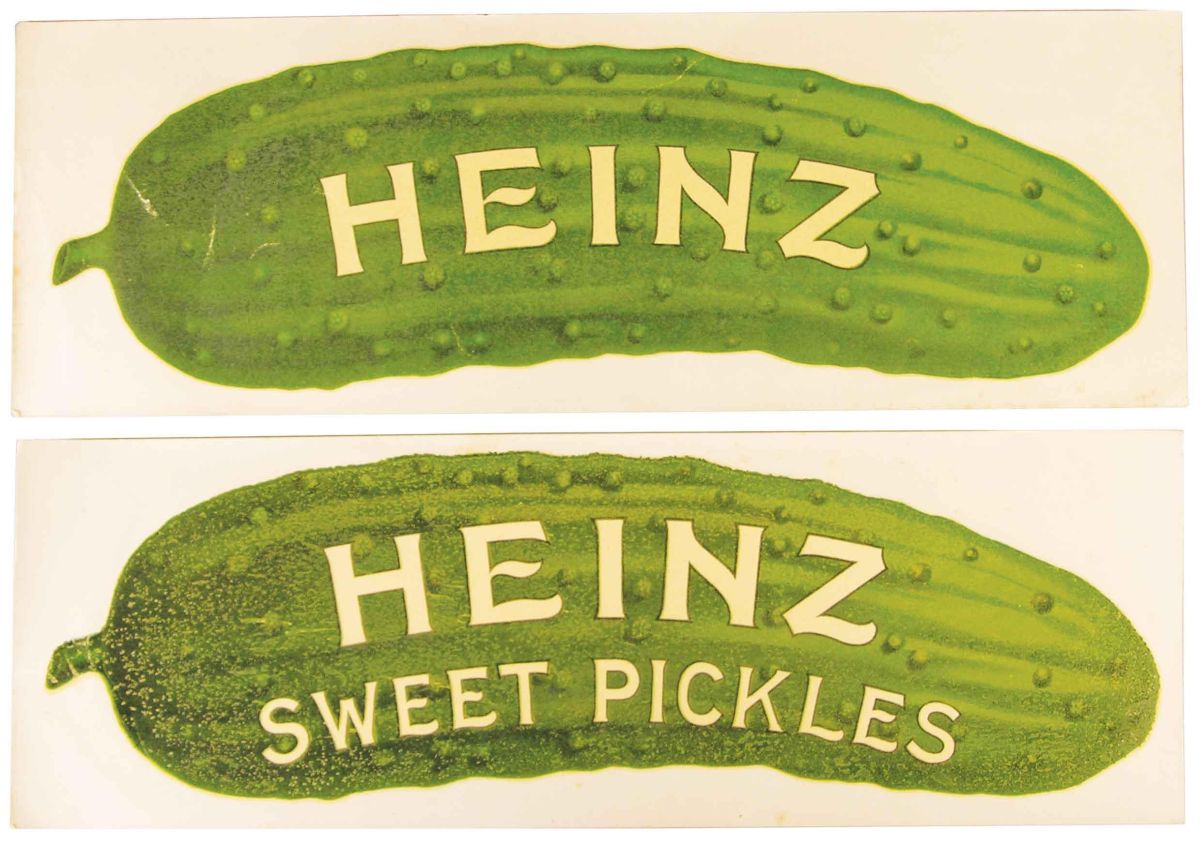 Lot of two very early Heinz pickle decals. Excellent condition. 12 inches long. 14 X 7 1/2 inches.
