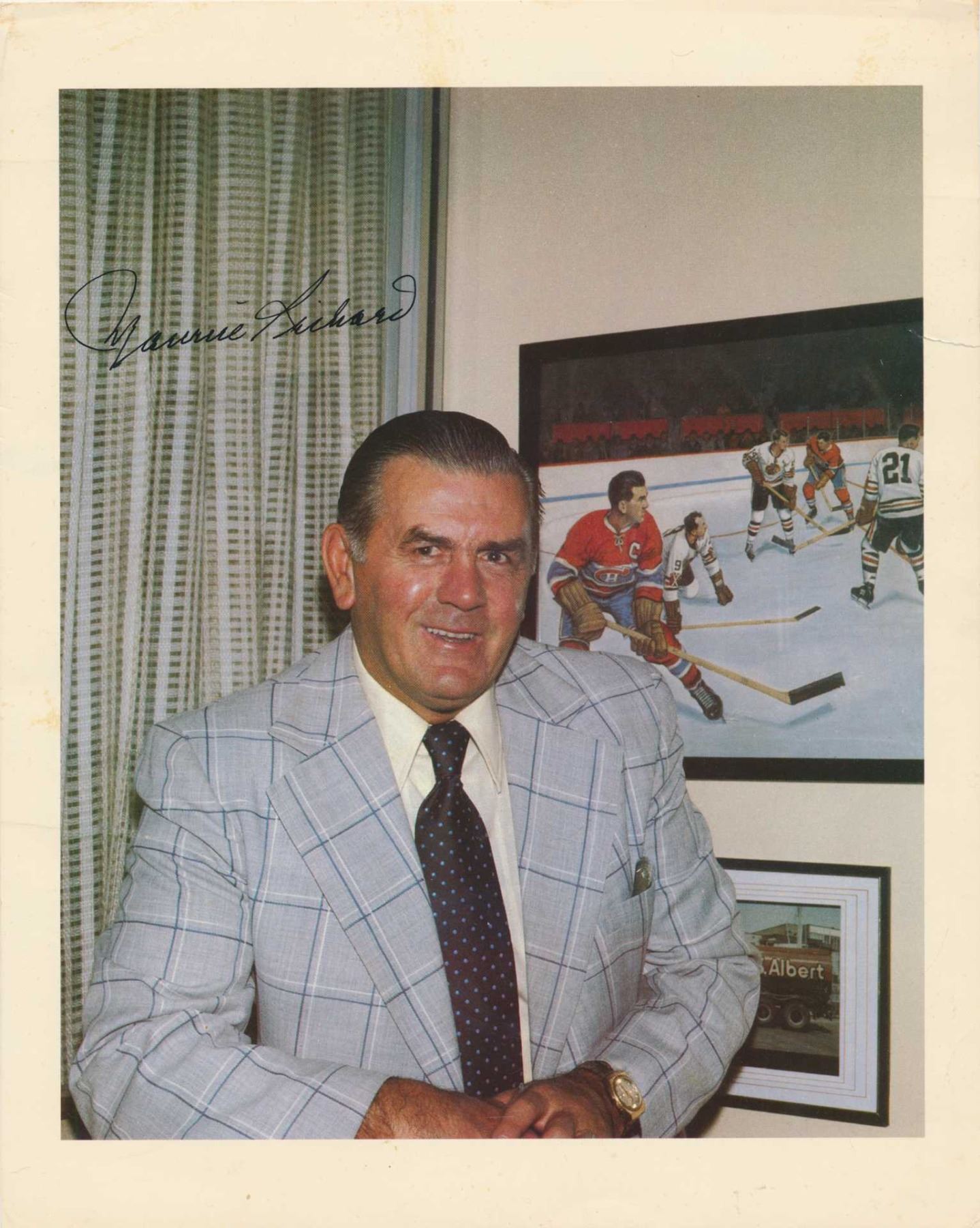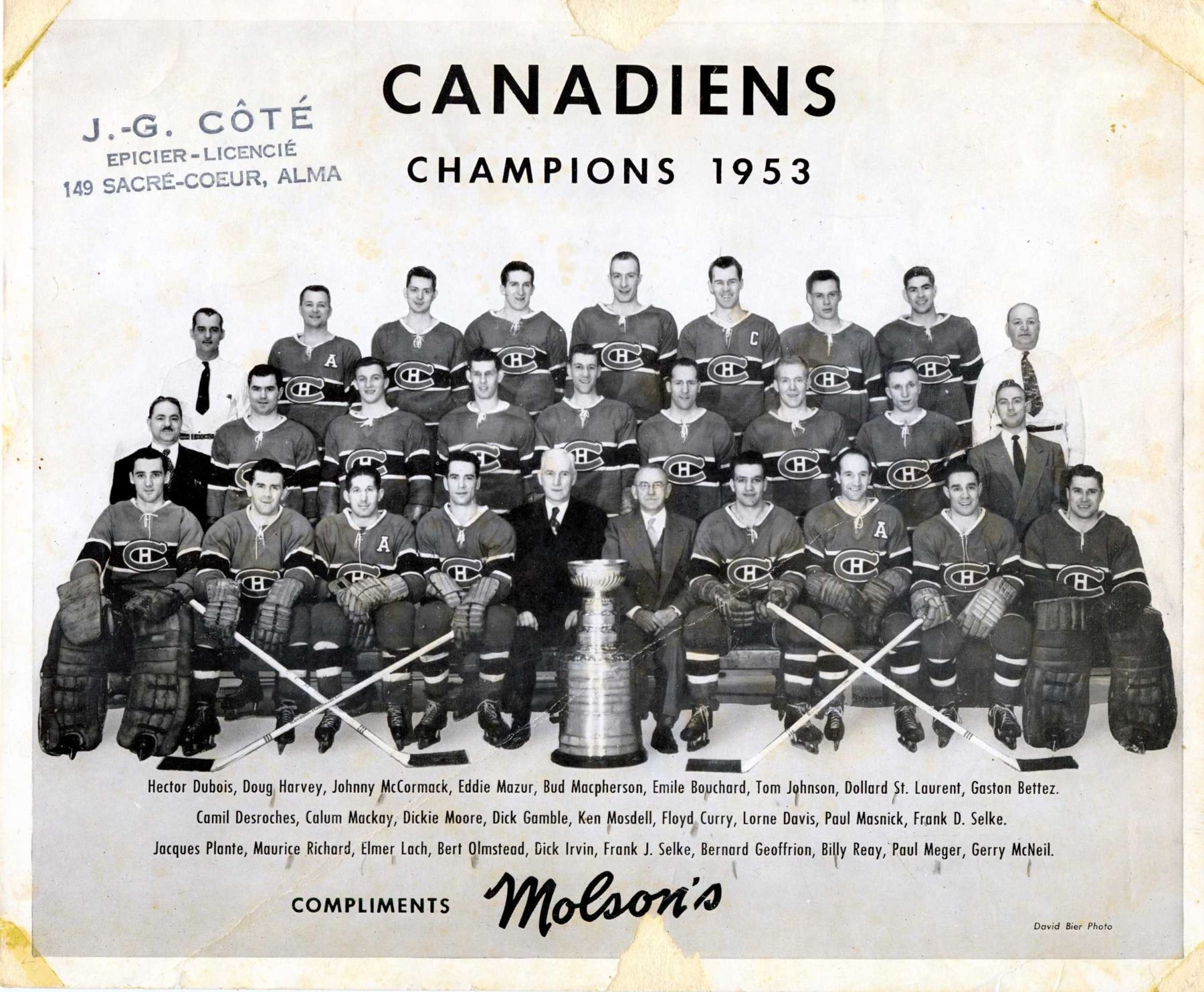 5 vintage photos of Hockey with among others Maurice Richard , Mark Hunter and the 1953 Canadian championship team.