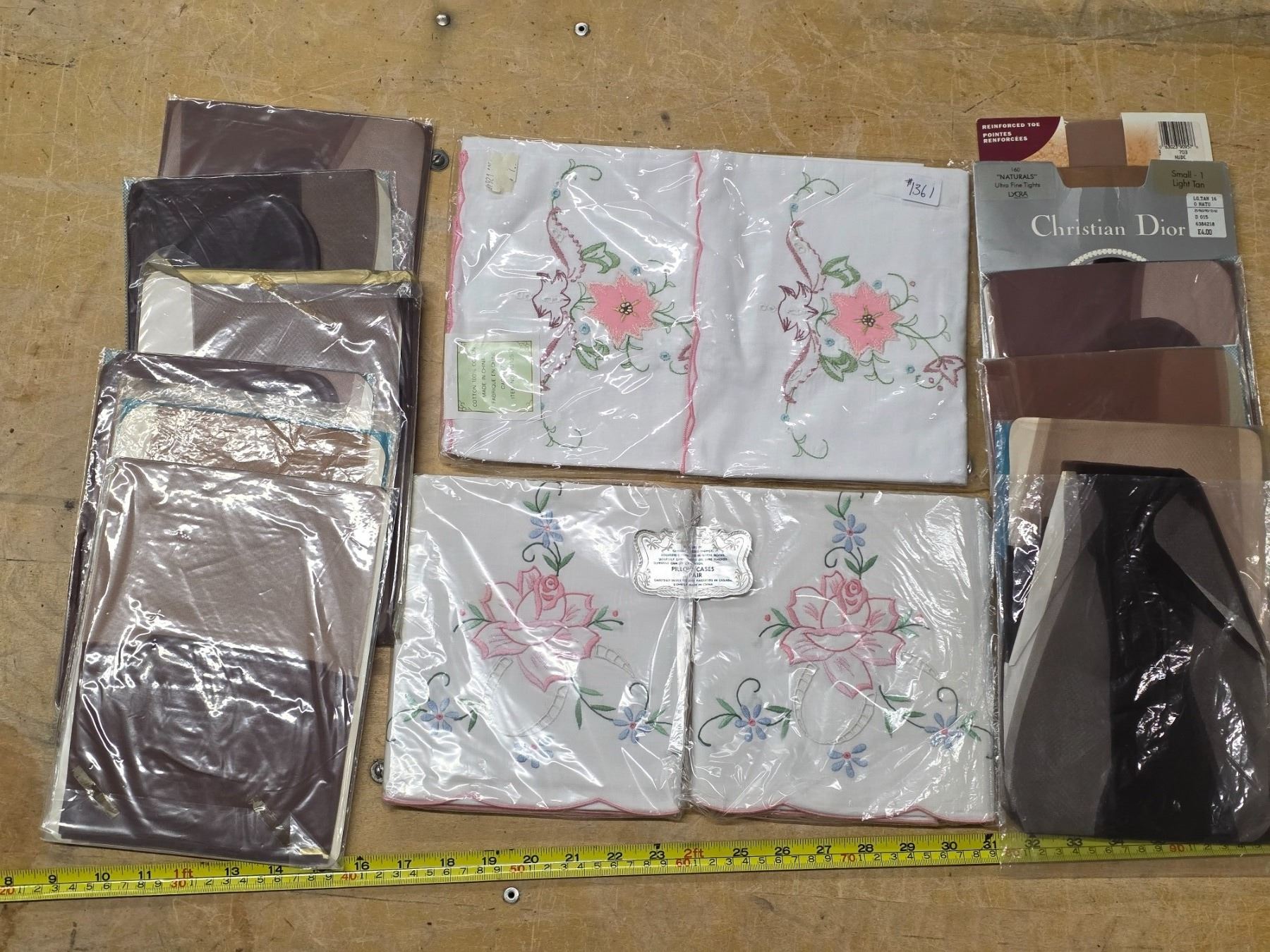 Lot of vintage pillow cases and nylons