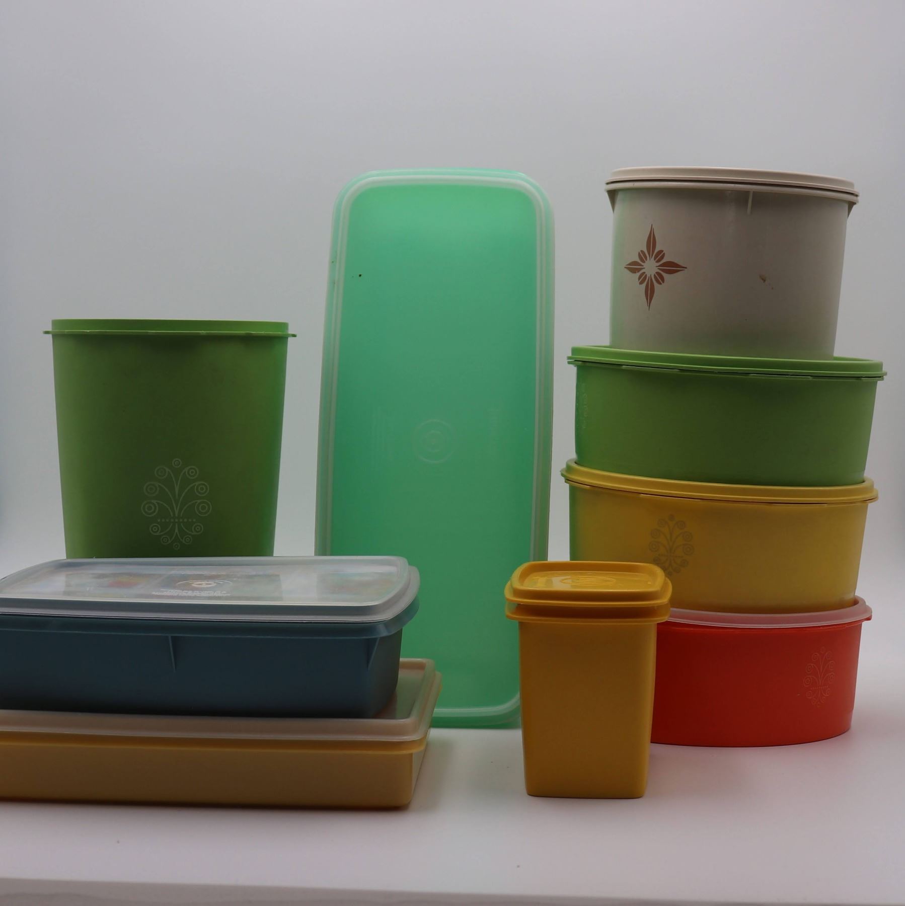 Lot of vintage tupperware and storage canisters