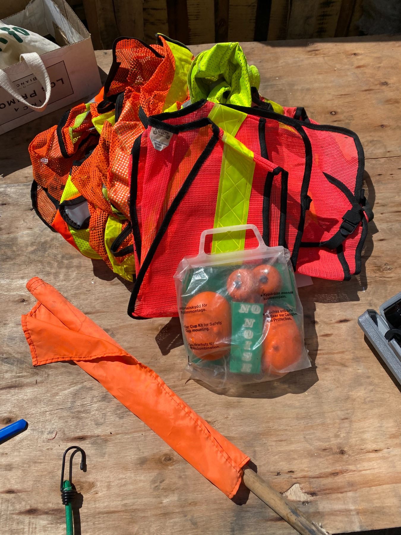 Lot safety vests and flag