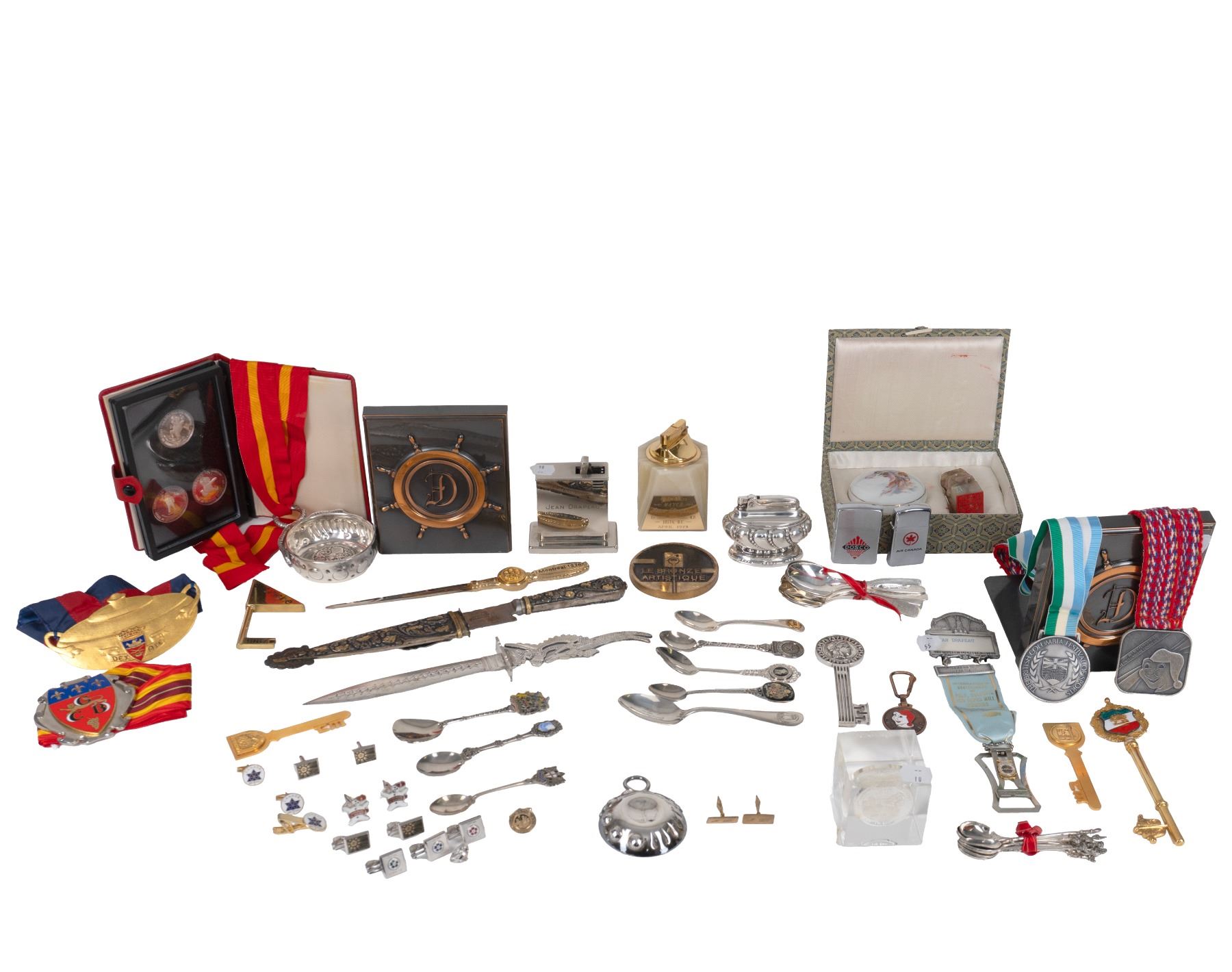 Provenance Jean Drapeau Estate \ Used Bonheur Bookstore, many items are identified with the name Jean Drapeau or with JD monogram, includes among other book supports, lighters, 2 tastevin, medals, souvenir spoons, pins, Provenance Jean Drapeau Estate \ Librairie Bonheur d'occasion