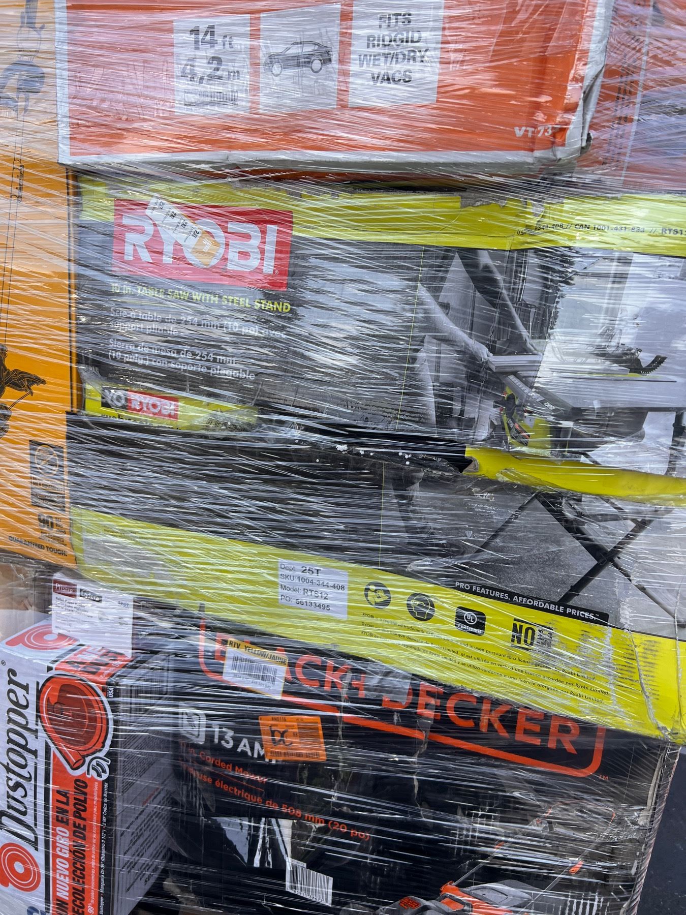 Lote de Mercancia Home Depot. Herramienta y Home Improvements. todo lo que se muestra/encuentra en el pallet presente es clasificado como sobrecargo y retornos. Algunos productos sob usados, con piezas restantes e incluso nuevos.