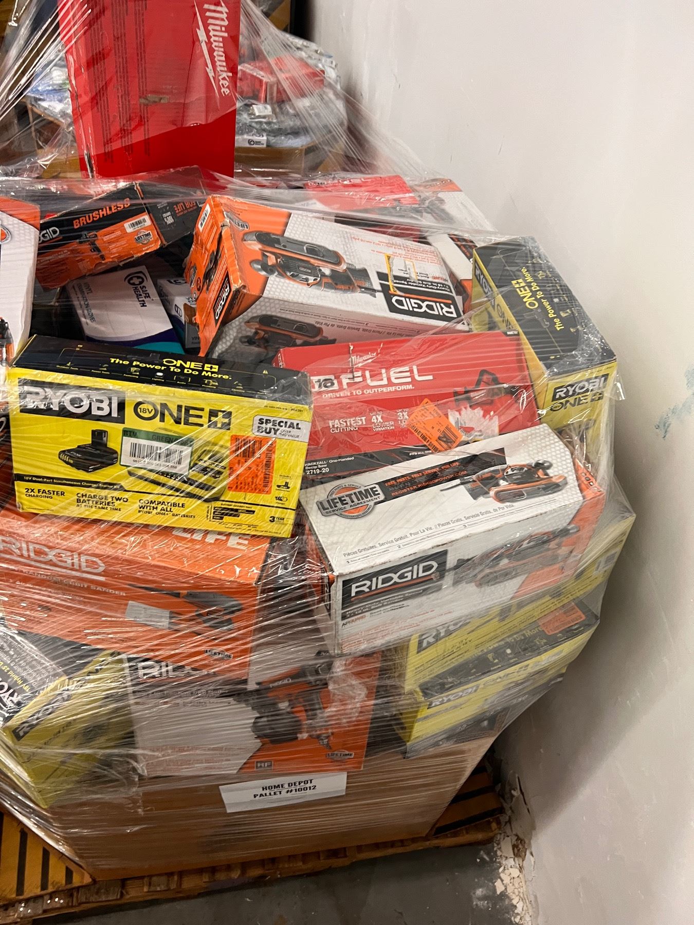Lote con Herramienta y Home Improvement de la tienda Home Depot. Retornos, sobrecargos y liquidaciones.