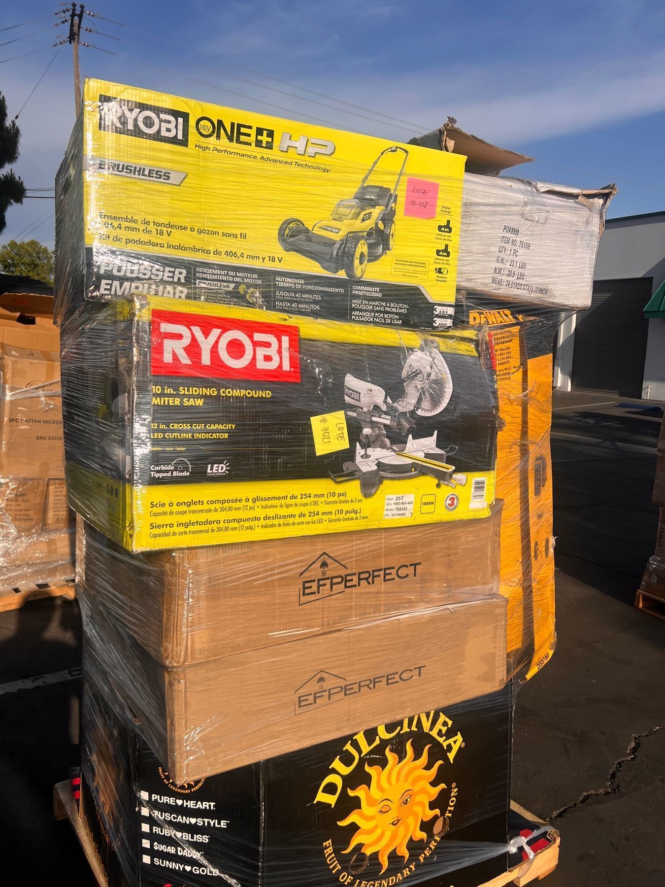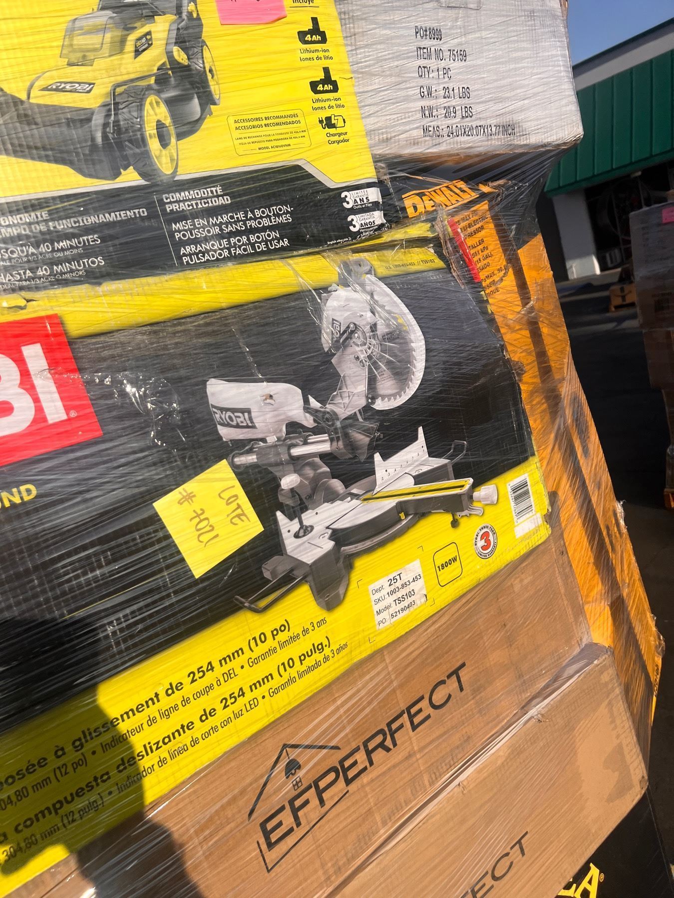 Lote de Mercancia Home Depot. Herramienta y Home Improvements. todo lo que se muestra/encuentra en el pallet presente es clasificado como sobrecargo y retornos. Algunos productos sob usados, con piezas restantes e incluso nuevos.