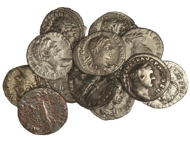 Lote 12 Denarios. VESPASIANO, TRAJANO, GETA, SEPTIMIO SEVERO, ALEJANDRO SEVERO... Dos Denarios forrados. (Algunas oxidaciones). A EXAMINAR. BC a MBC+.