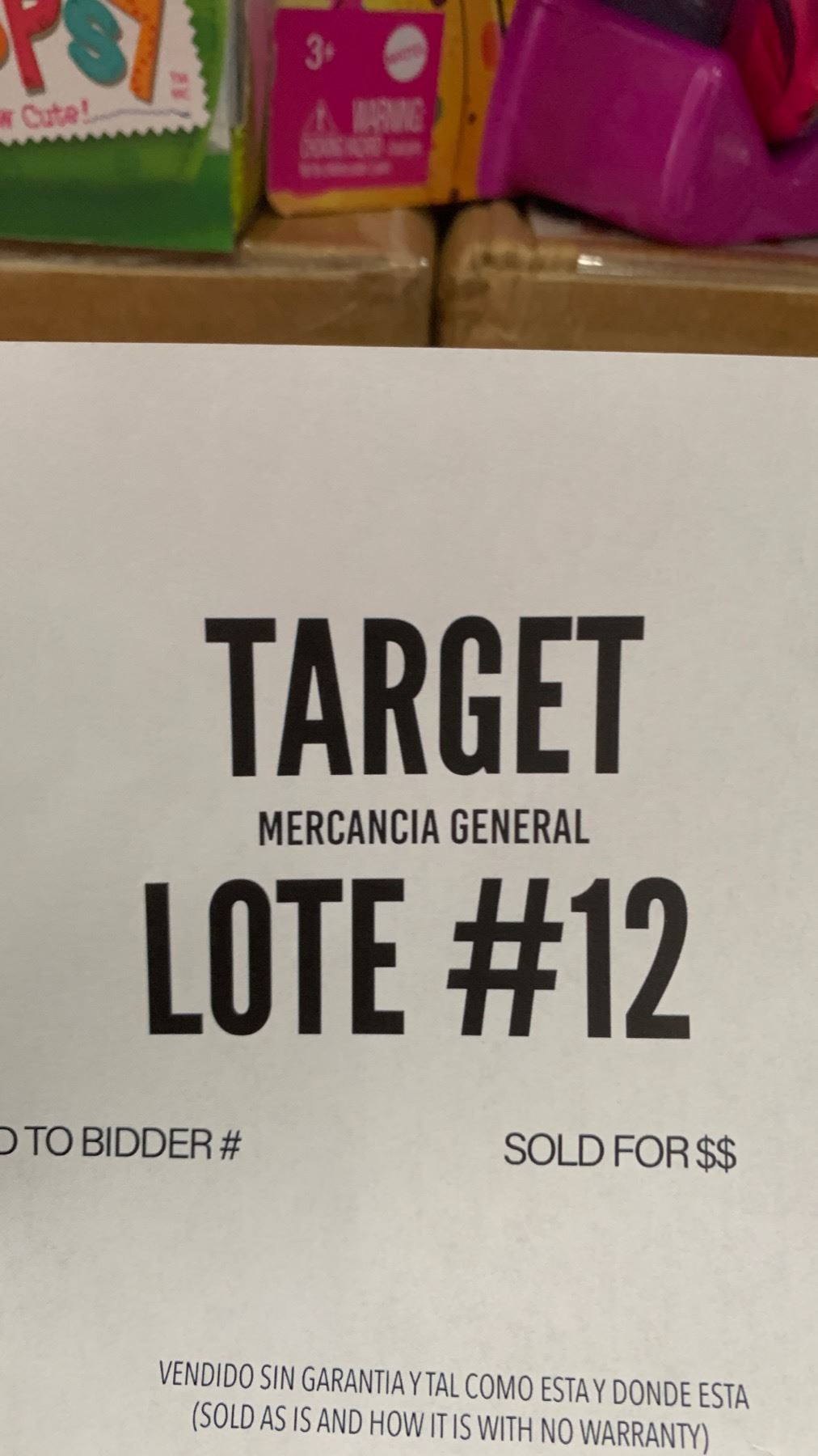 Bienvenidos a nuestros eventos de subasta de pallets, primero que nada te hacemos presentes nuestros términos y condiciones en cada evento de subasta presente. Al someter una apuesta u oferta en cualquiera de nuestros pallets/lotes estás aceptando nuestros términos y condiciones. Toda nuestra mercancía disponible a la venta en subasta es clasificada como retornos, liquidaciones y sobrecargo de mercancía. La mercancía presente puede que esté usada, dañada, incompleta, inclusive totalmente nueva. No ofrecemos garantía, intercambios ni devoluciones, la cual manera todas nuestras ventas en subasta son finales. El apostador es responsable de liquidar cada una de las apuestas ganadas durante la subasta, al no ser así, el apostador perderá su depósito y será negado en participar en futuras subastas. Todos los apostadores tendran 24 horas para liquidar y retirar la mercancia adquirida durante la subasta. Cada pallet/lote tendrá "Auction Fee" el cual el apostador ganador es requerido a pagar el 15% de "Auction Fee" y los impuestos de el estado el cual es el 7.5% del monto total a su compra. Cada uno de los Compradores son responsables de su mercancía al momento de liquidarla el cual usted tiene que agendar con la compañía de preferencia el traslado de su mercancía o también tiene la opción de venir a recogerla a nuestra localidad. El cual tiene 48 horas de el momento que el lote fue subastado.