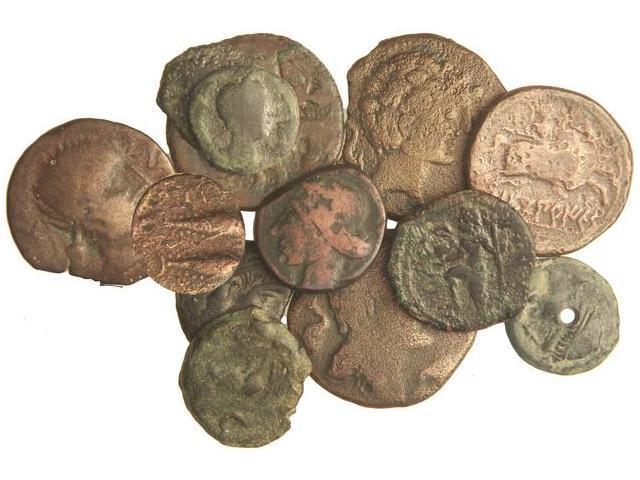 Lote 13 monedas 6 Ases y 7 Semis. CASTULO, CARTEIA, CELSE, OBULCO, ILTIRTA, CARTAGONOVA, SECOBIRICES, GADES... (Una, perforación). A EXAMINAR. BC- a BC+.