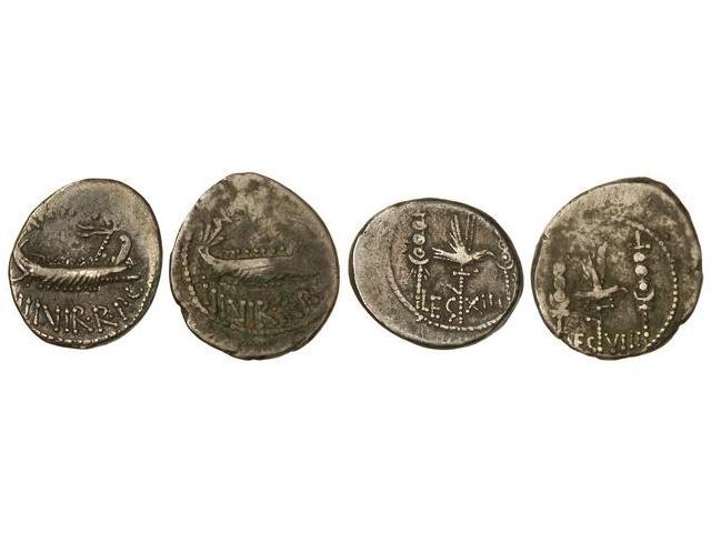 Lote 2 Denarios. Acuñadas eñ 32-31 a.C. MARCO ANTONIO. Legiones VIIII y XIII. A EXAMINAR. Cal-188, 195; FFC-41, 48. BC+ a MBC-.