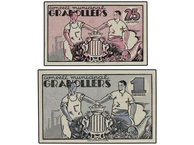 Lote 2 billetes 25 Cèntims y 1 Pesseta. 1 Juny 1937. C.M. de GRANOLLERS. AT-1175/76. EBC+.
