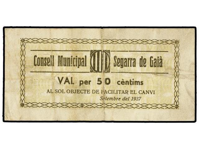 Lote 2 billetes 25 y 50 Cèntims. Setembre 1937. C.M. de SEGARRA DE GAIÀ. AT-2309, 2310; T-2675, 2676. MBC a SC.