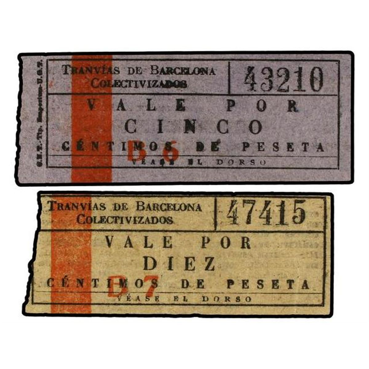Lote 2 billetes 5 y 10 Céntimos. - TRANVÍAS COLECTIVIZADOS. BARCELONA. - MBC. - -