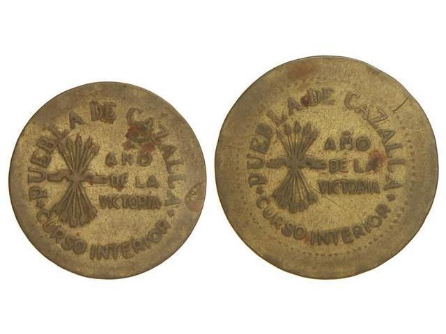 Lote 2 monedas 10 y 25 Céntimos. - PUEBLA DE CAZALLA. - Latón. (10 Céntimos con algunas oxidaciones). MBC. - -