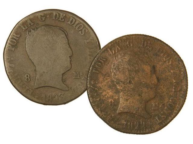 Lote 2 monedas 8 Maravedís. 1822 y 1823. SEGOVIA. Cal-1699, 1700. RC y BC.