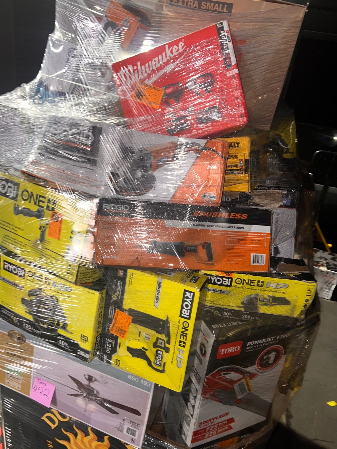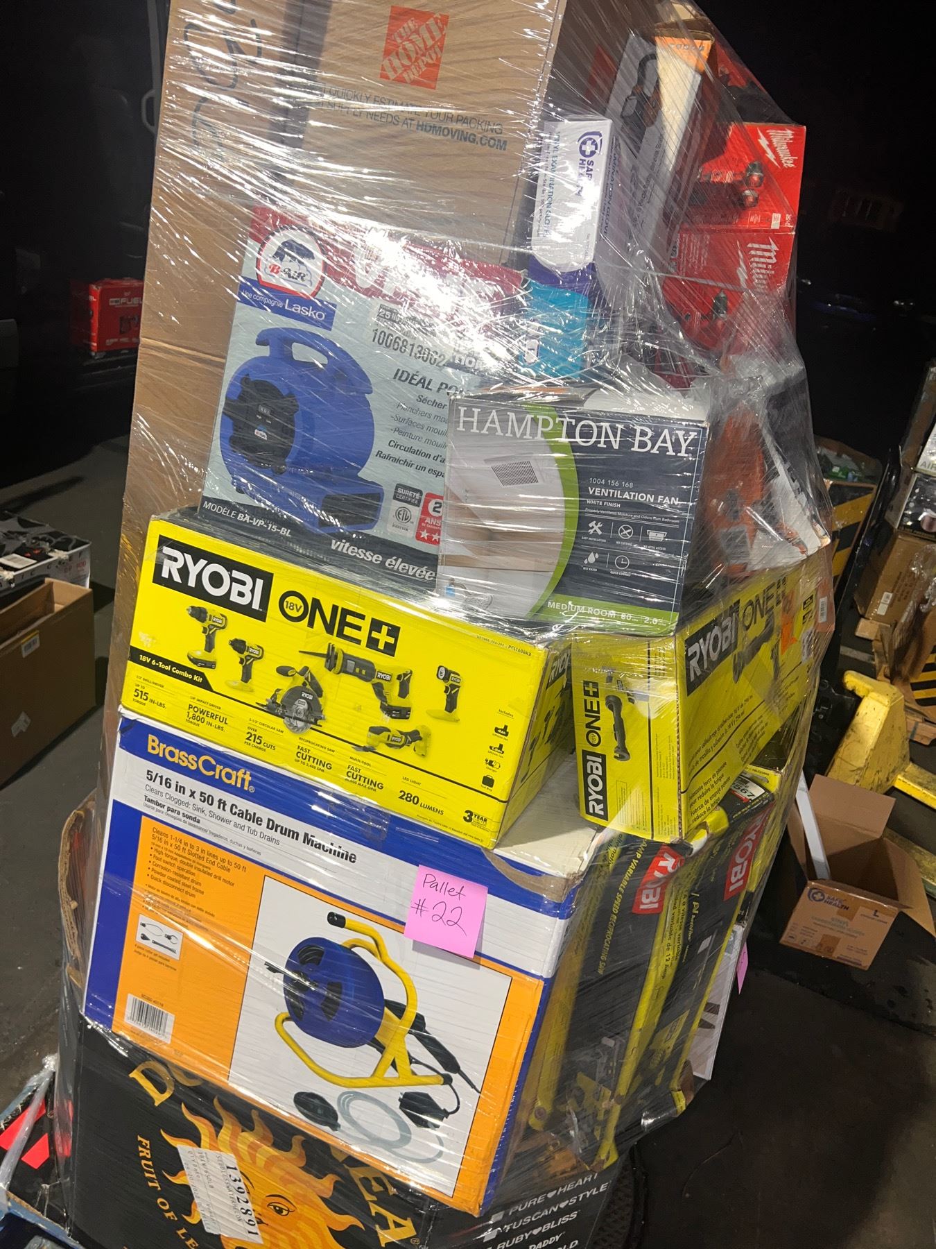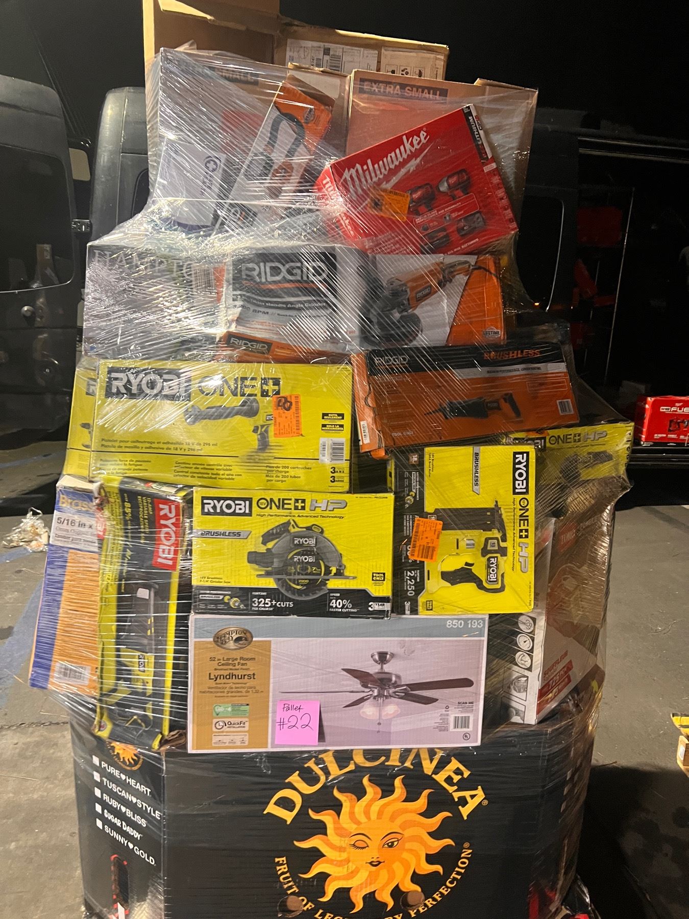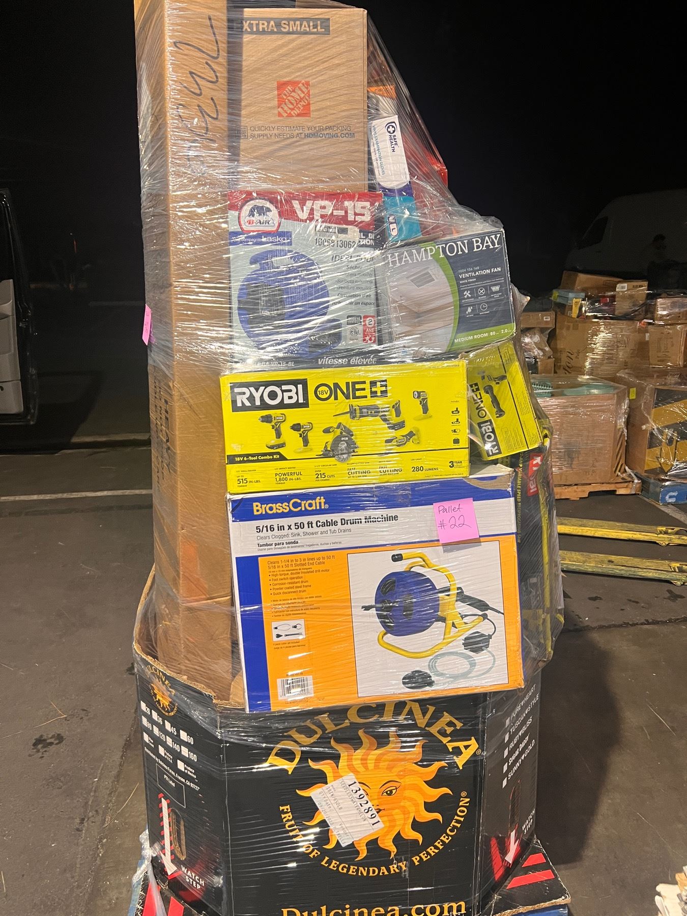 Pallet de Herramienta y Home Improvements de la tienda Home Depot. Todos los productos que pertenecen a este pallet son clasificados como retornos, liquidaciones y sobrecargos.