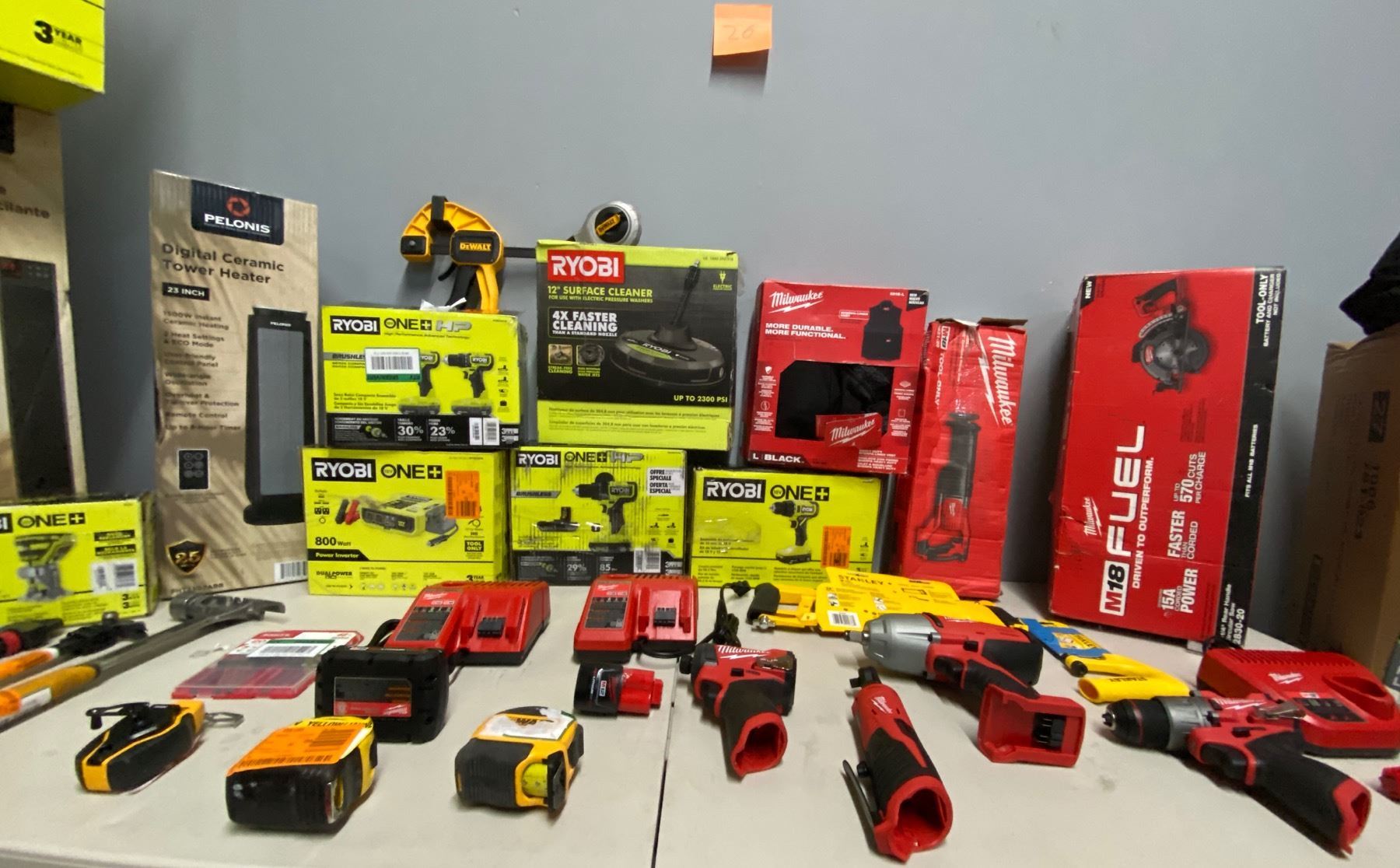 Lote de Herramienta y Home Improvements de la tienda Home Depot. Lote te incluye sopladora de mochila Ryobi, focos para hogar, aspiradora Ryobi, multitool Ryobi, taladros Milwaukee, mesa para sierra Dewalt, Skilsaw Milwaukee, suéter con calefacción Milwaukee, calentones, sawzall Milwaukee, batearías de marcas Dewalt y Milwaukee, taldadros Ryobi, roto martillo Ryobi, y mucho mas.
